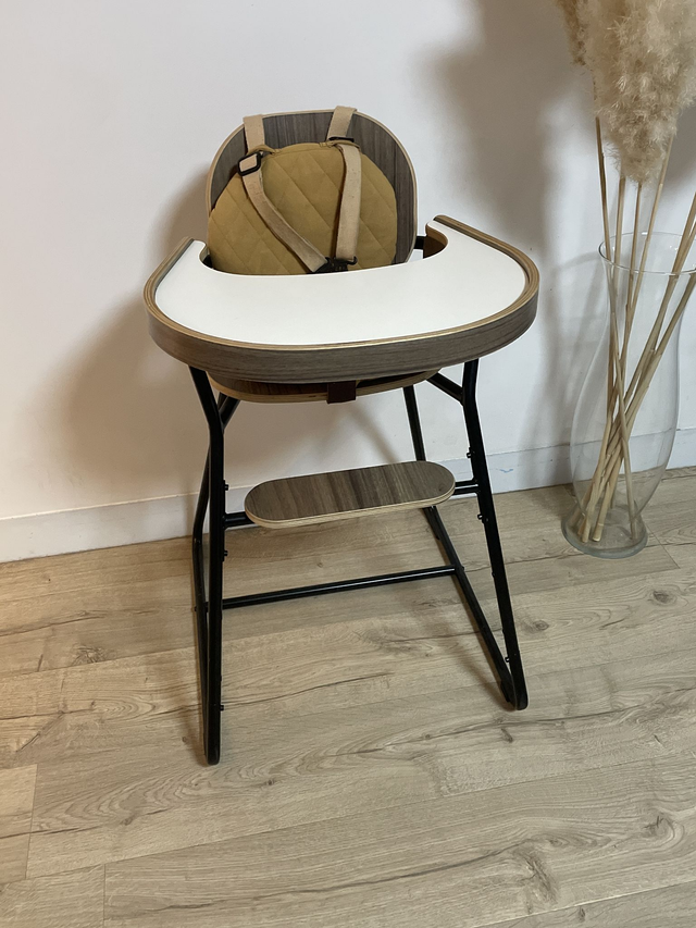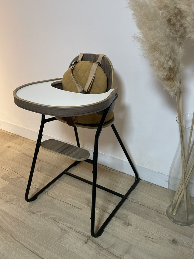 La chaise TIBU, dont le dessin épuré s’inspire du design industriel français des années 1950 est une vraie réussite. Elle propose pas moins de 10 configurations d’assises différentes, permettant ainsi de l’utiliser dès 6 mois (avec le baby set, la tablette ou la ceinture avec entrejambe) jusqu’à 8 ans et plus. Une paire de coussins de dossier et d’assise est proposée en option et conseillée pour les bébés de 6 à 18 mois.