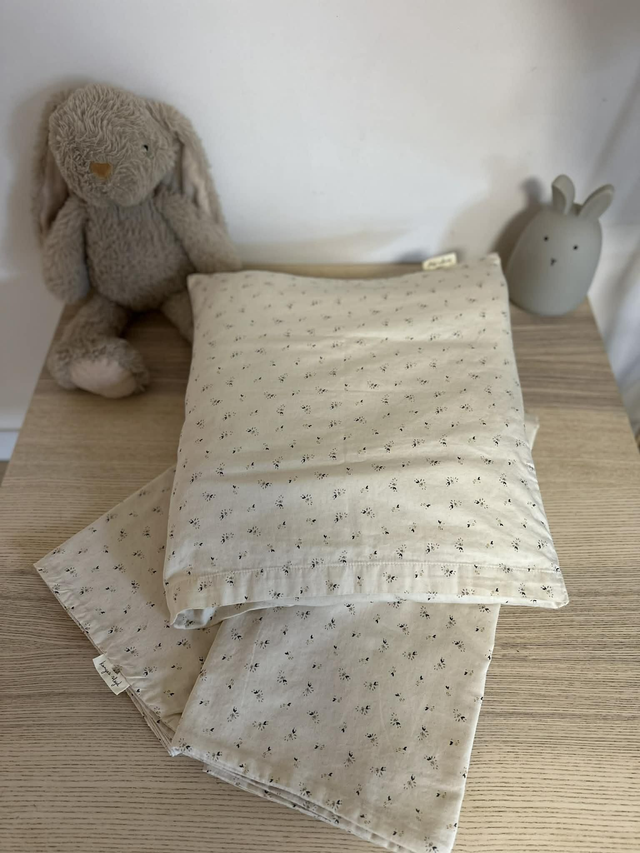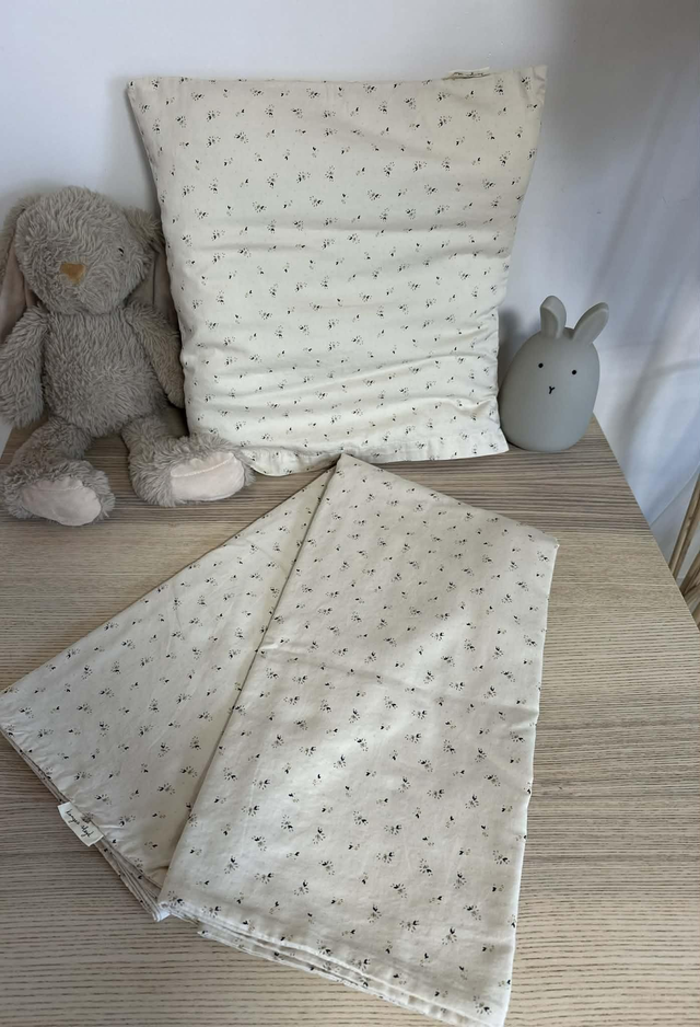 Linge de lit junior confectionné en popeline de coton biologique, légère et respirante. L'ensemble comprend une housse de couette et une taie d'oreiller assorties. Fermeture zippée. Nous recommandons de laver tout le linge de lit avec la fermeture éclair fermée. Cela permettra de préserver sa forme.