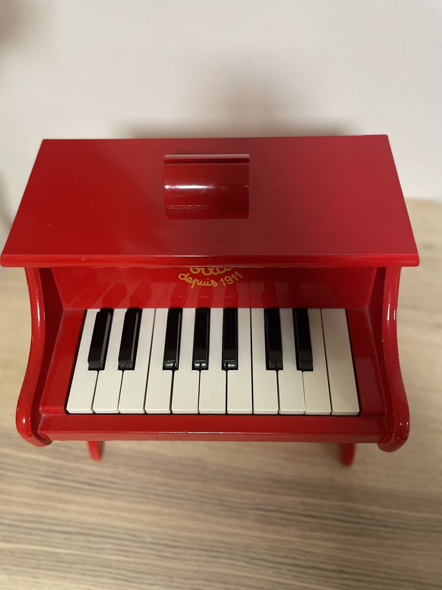 Sans avoir la prétention d'être un instrument de musique aux notes parfaitement ajustées, ce joli piano-jouet en bois rouge de 18 touches est adapté aux enfants dès 3 ans, afin qu'ils fassent leurs premiers pas dans le monde musical.
