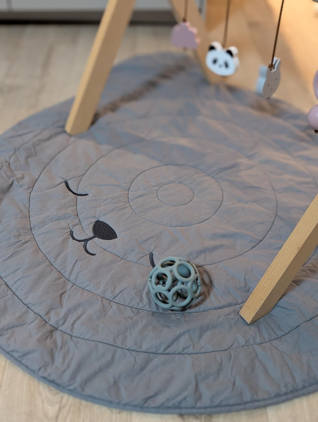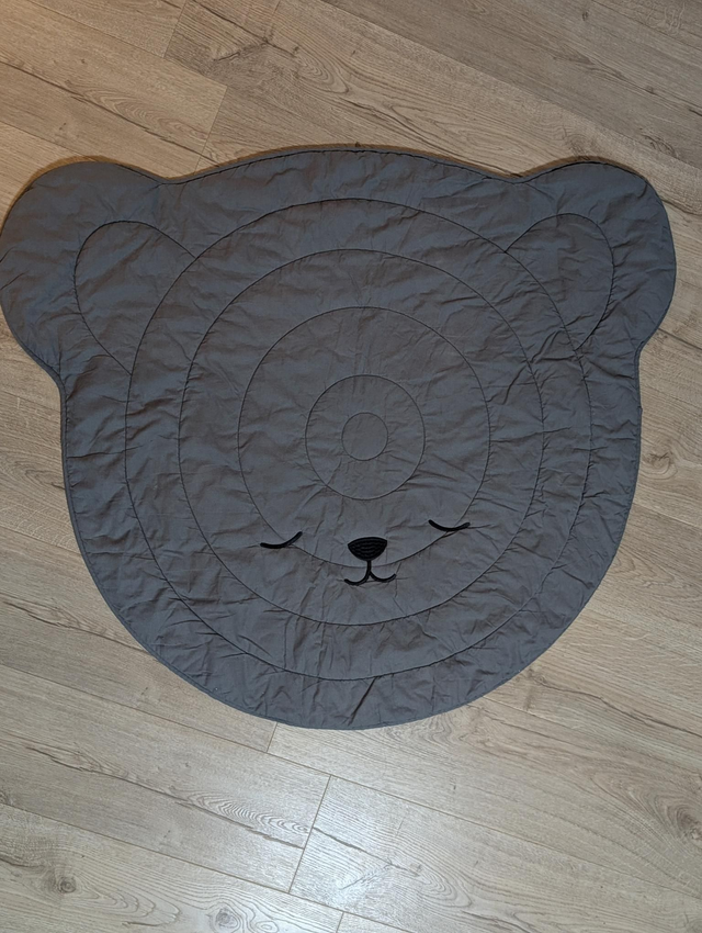 Donnez une note chaleureuse à la chambre de vos enfants avec ce tapis ours gris 1er âge en coton 95cm x 116 cm.